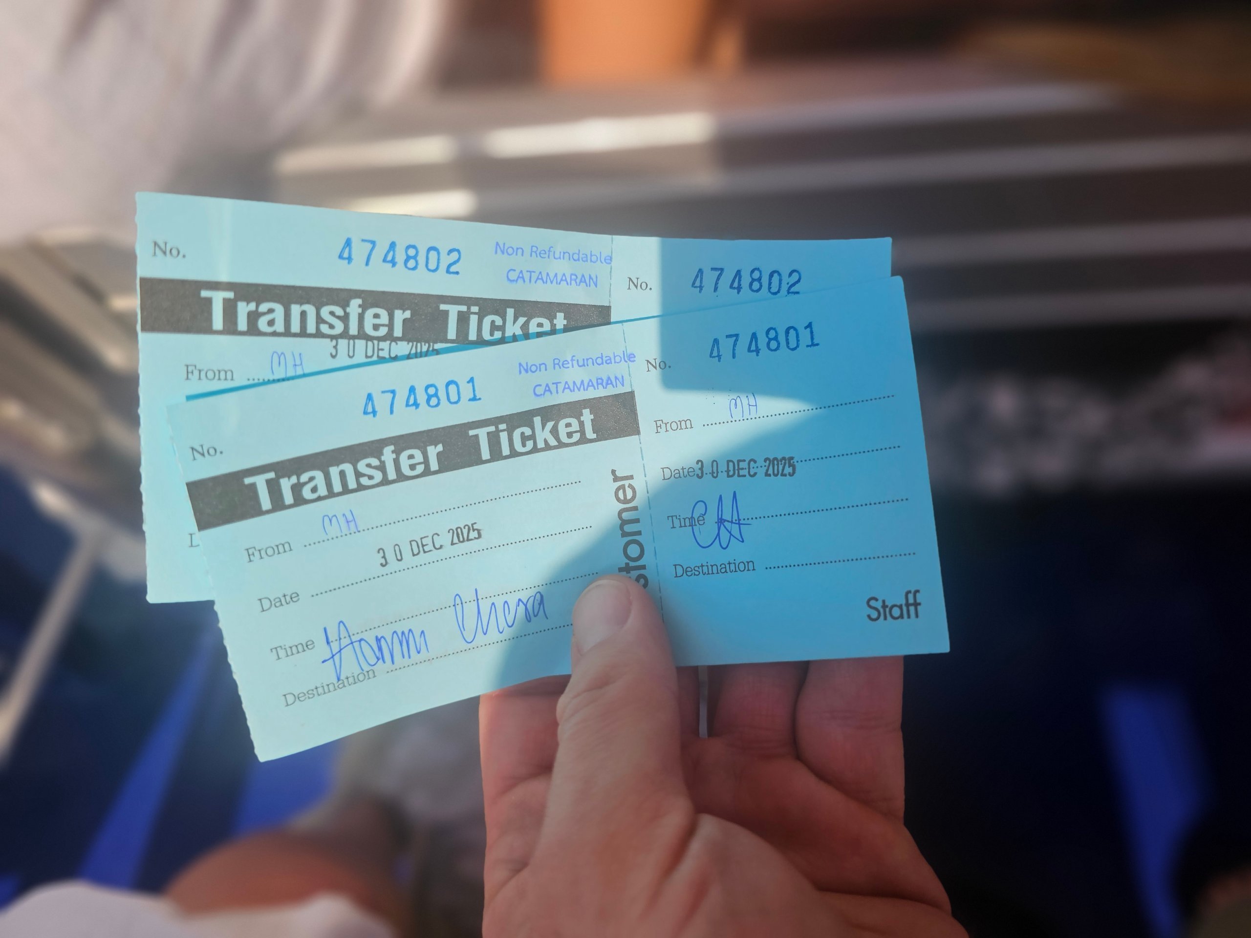Além disso, os táxis, Grab e Bolt não podem ir diretamente para os barcos, mas é preciso caminhar cerca de 600 metros até ao centro da cidade. Pouco cómodo com malas grandes.