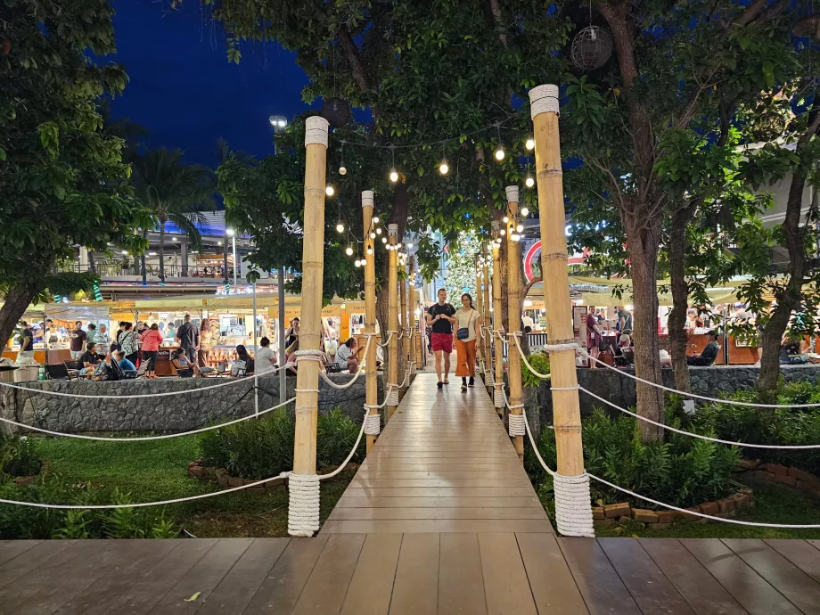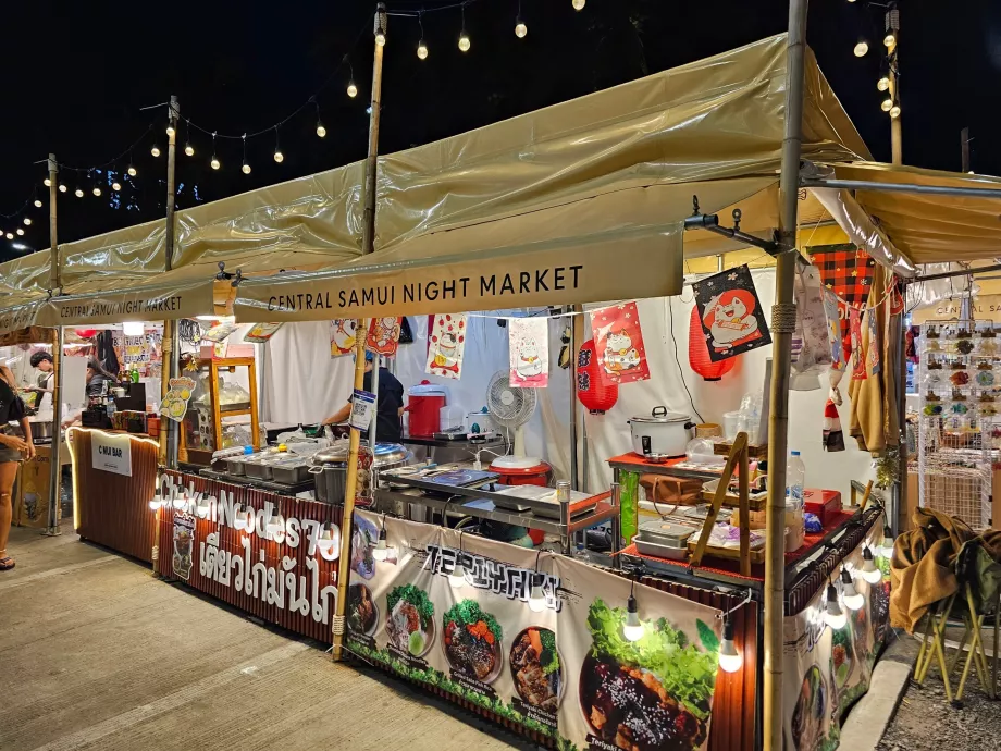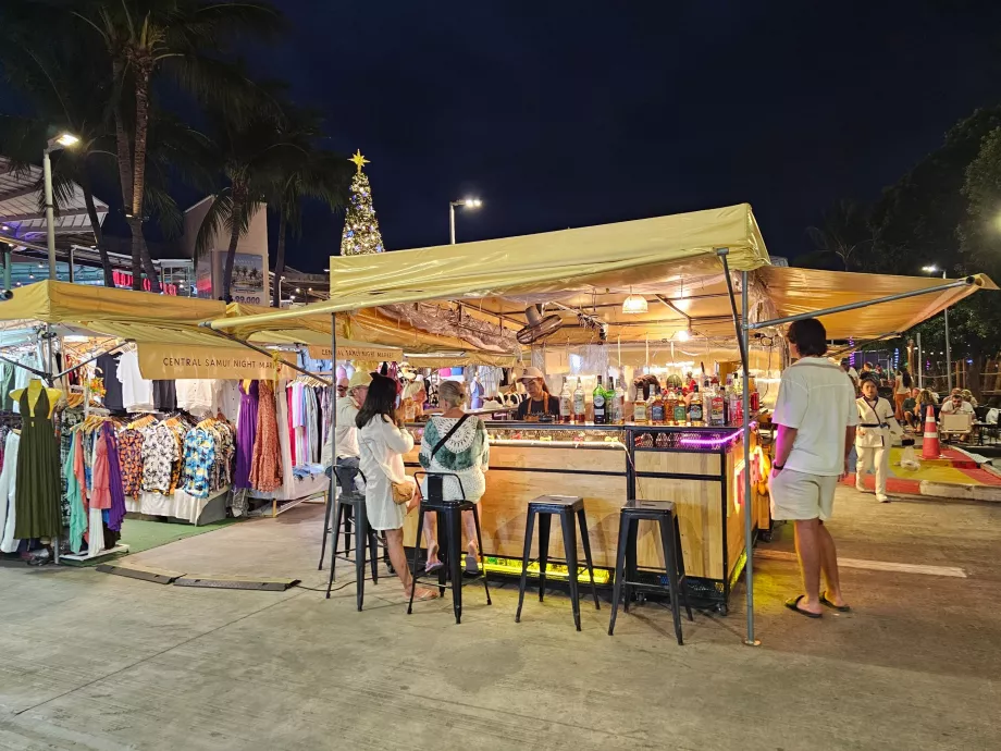 À noite, o centro da cidade se transforma em um pequeno mercado noturno, que complementa as ofertas da praça de alimentação, bem como o Chaweng Night Market, mais local e mais barato, do outro lado da rua.