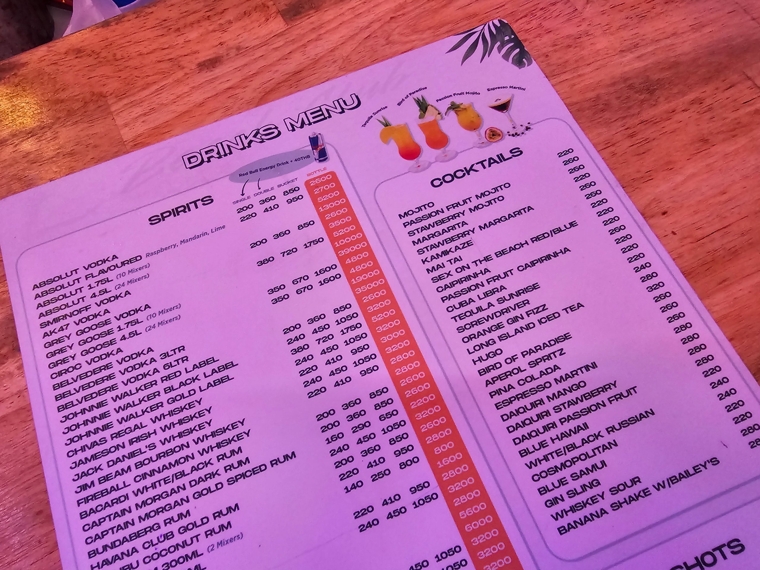 - flyboard → aprox. 2 000-3 500 thb