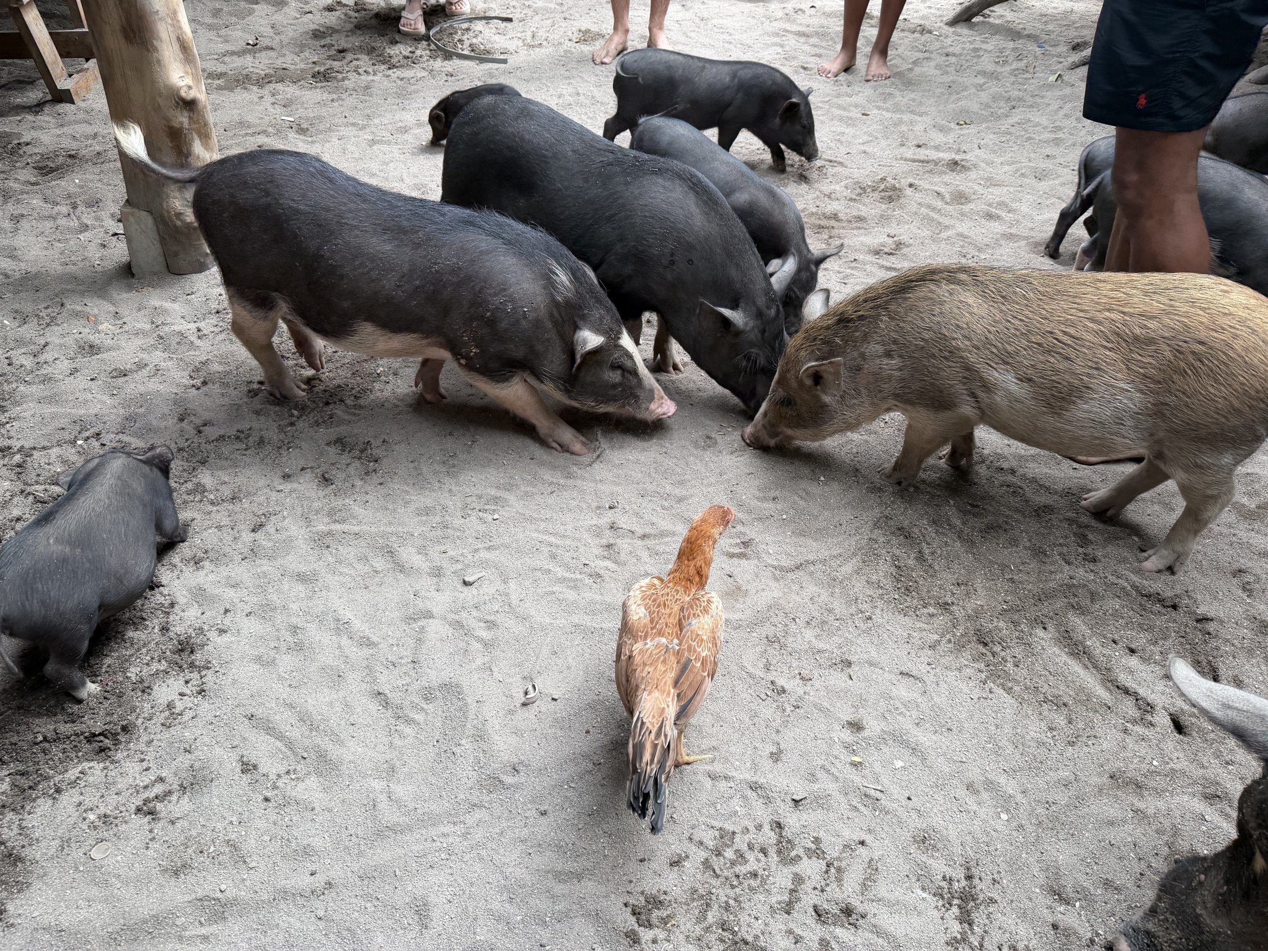 O maior erro é chegar por volta do meio-dia. É nessa altura que chegam as excursões organizadas e a romântica praia tropical transforma-se numa fábrica de fotografias. Se querem sossego e melhor luz, vão logo de manhã quando está mais calmo e os porquinhos estão mais activos.