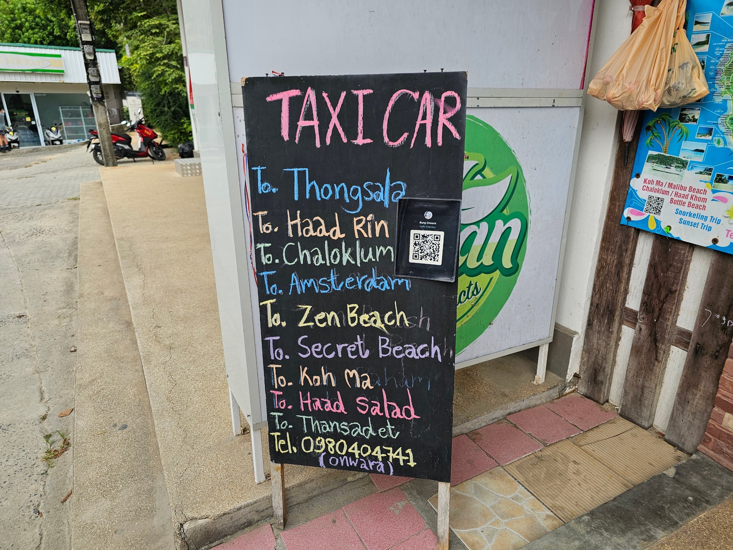 Os mototáxis funcionam principalmente no porto de Thong Sala. Não os encontrámos muito noutros locais.