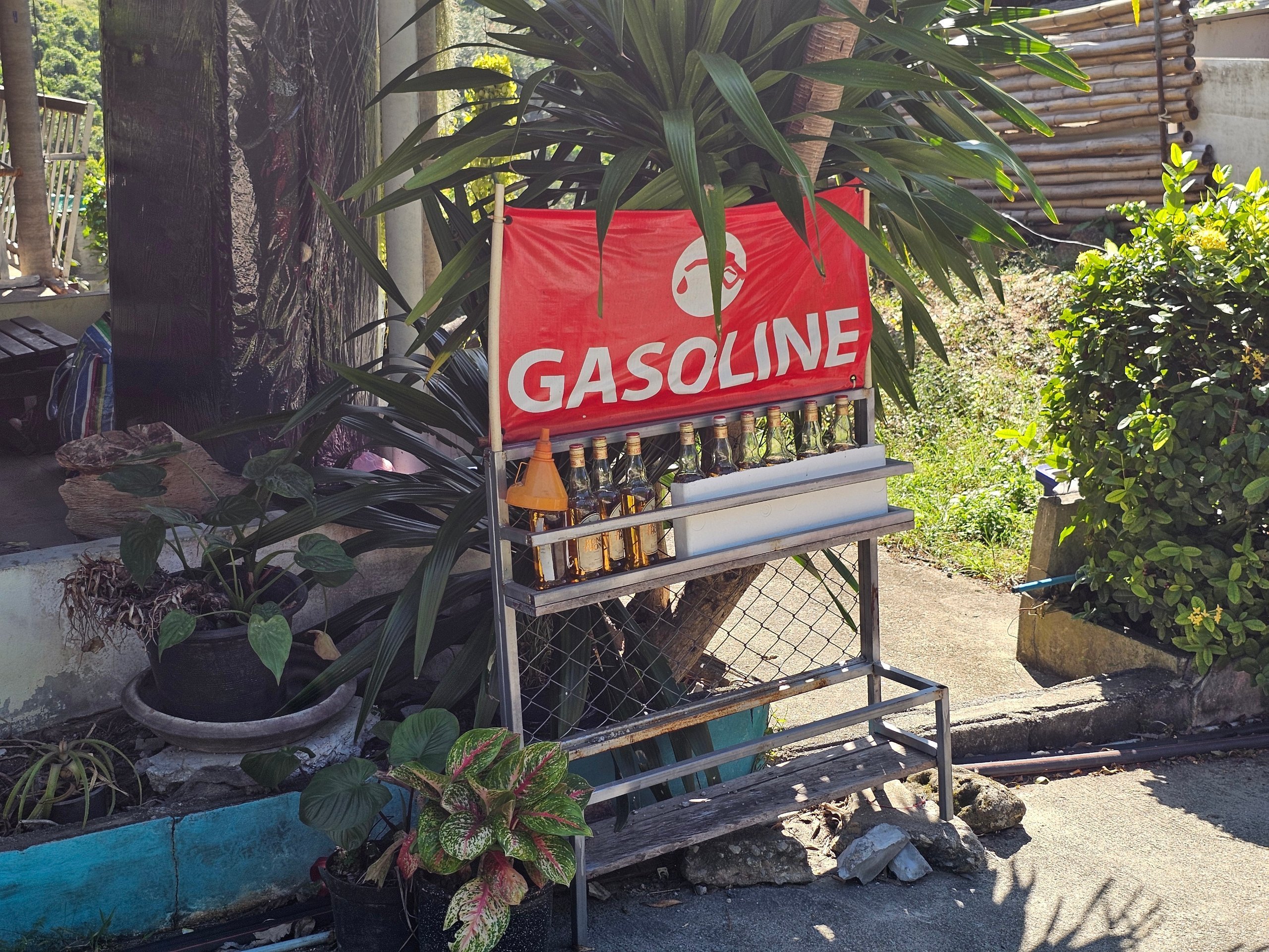 Para além disso, literalmente a cada poucas centenas de metros à volta da ilha, encontrará vendas improvisadas de gasolina em garrafas de vidro de litro.
