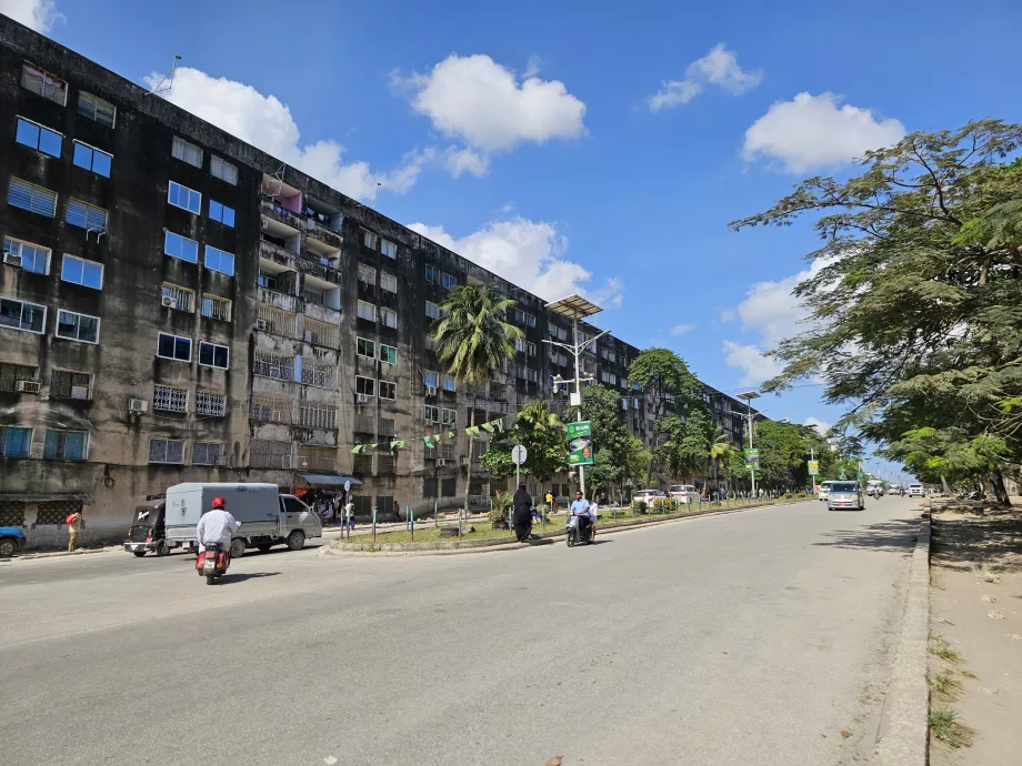 O museu pode ser acedido descendo a rua entre os maiores edifícios de apartamentos de Zanzibar.