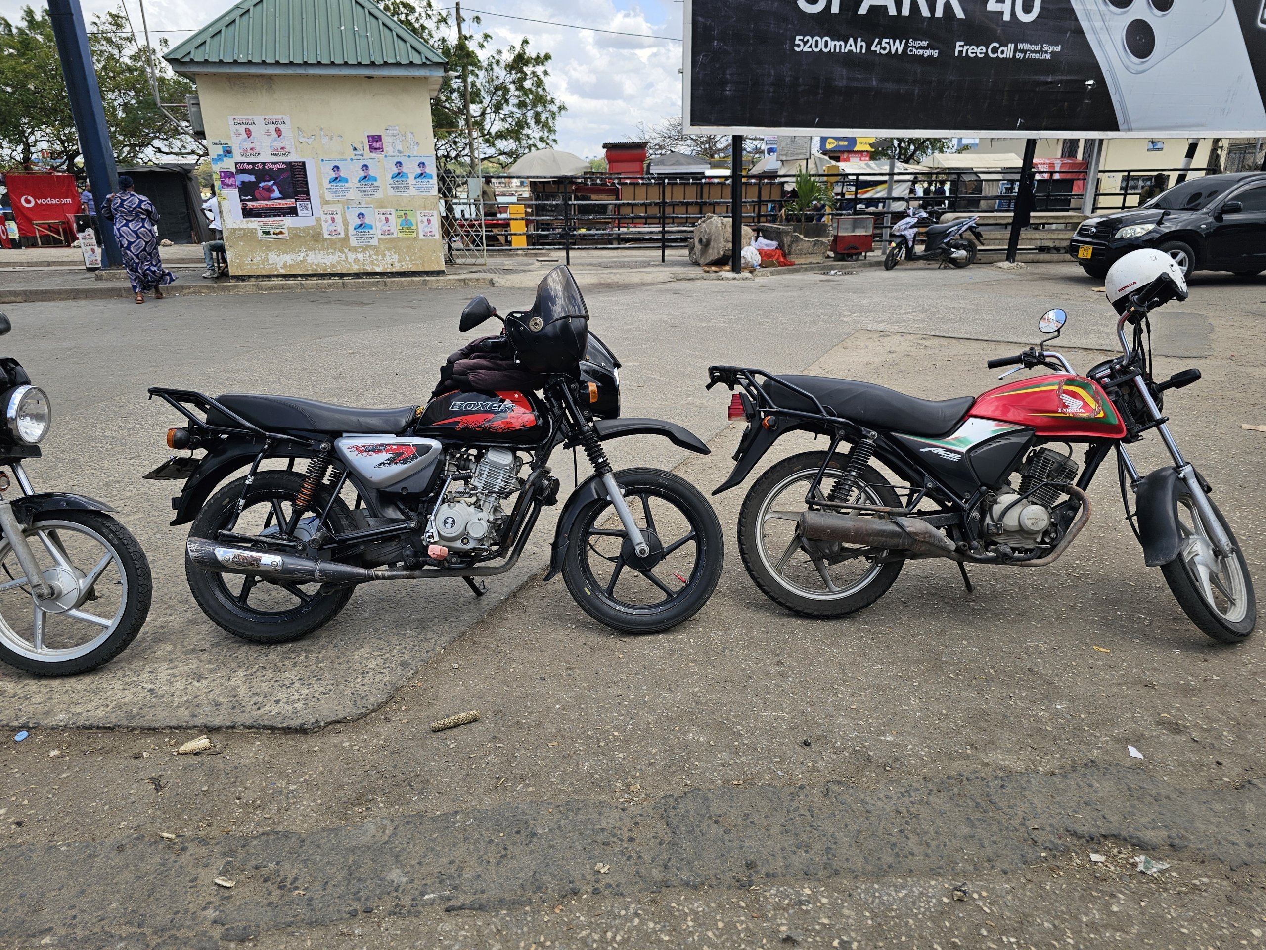 Ao viajar com a Bolt e a Uber em Dar es Salaam, pode escolher entre três opções - um carro clássico, um bajaj (3 rodas), que é um tuk tuk, ou uma mota (boda boda).