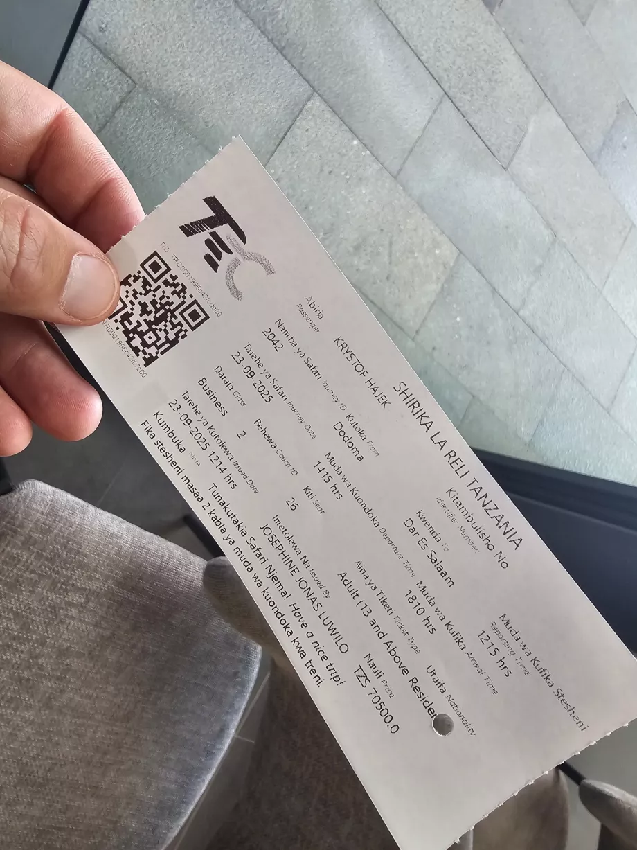 Os bilhetes para os comboios SGR modernos também podem ser comprados através de terceiros, como o 12go.asia, que gostamos de utilizar quando viajamos pela Ásia. No entanto, não funcionou muito bem na Tanzânia. Este sítio Web organiza os bilhetes de comboio através de um intermediário local, mas mesmo depois de várias solicitações, ele não enviou o bilhete e eu tive de comprar um novo bilhete na estação.