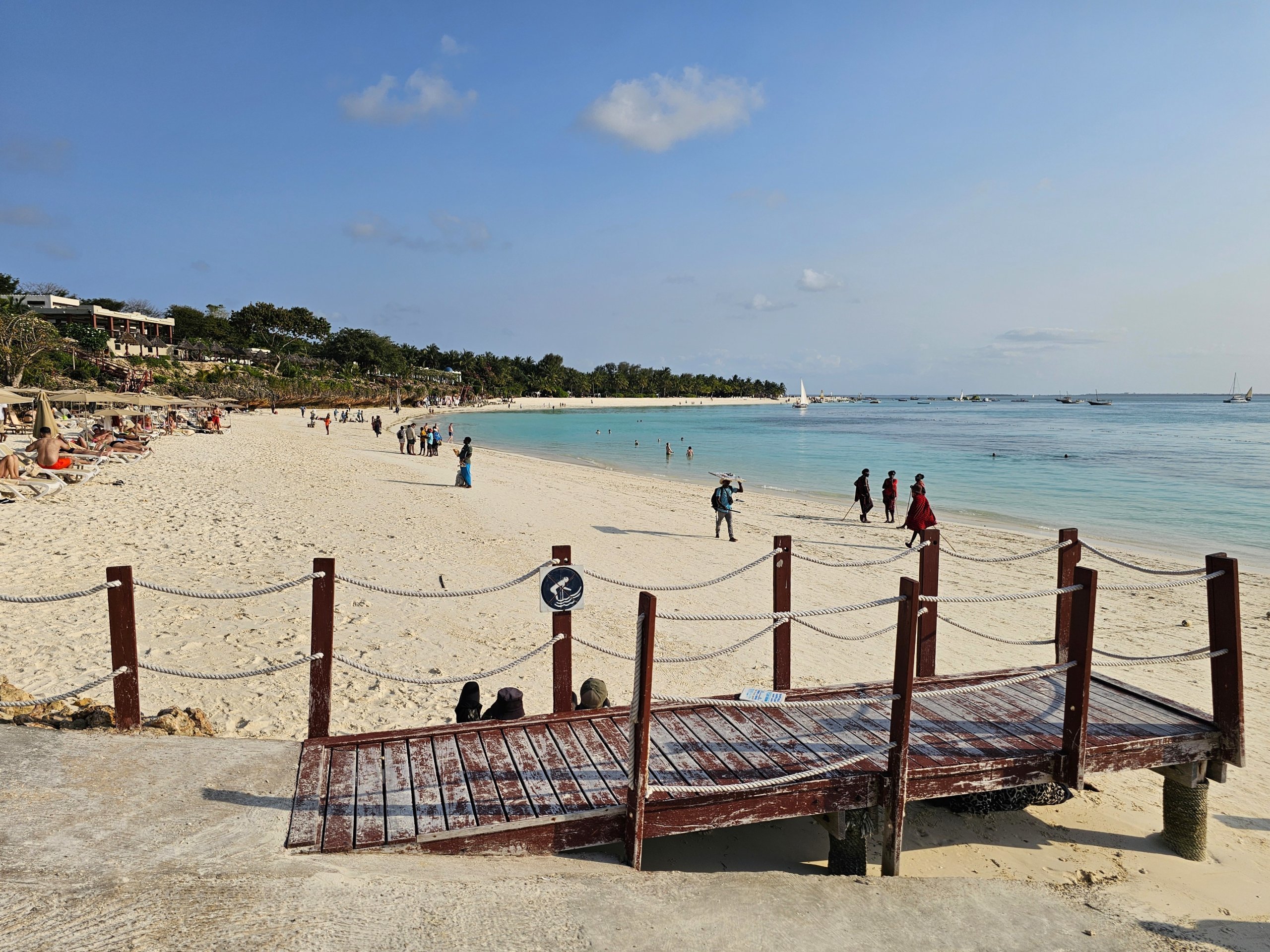 Embora a praia esteja ladeada por alguns dos hotéis mais luxuosos de Zanzibar, o acesso à praia é livre para todos.