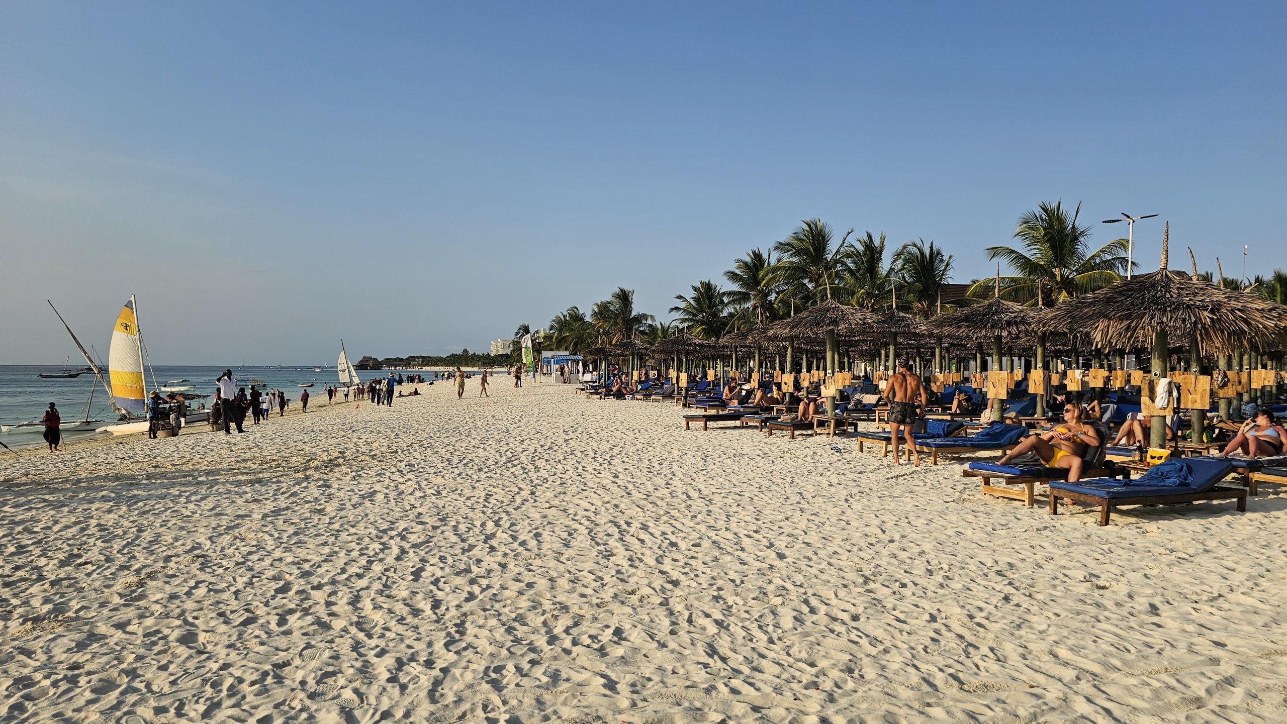 Não só a praia é longa, como também é extremamente larga ao nível do centro da cidade - certamente a mais larga de todas as praias de Zanzibar.