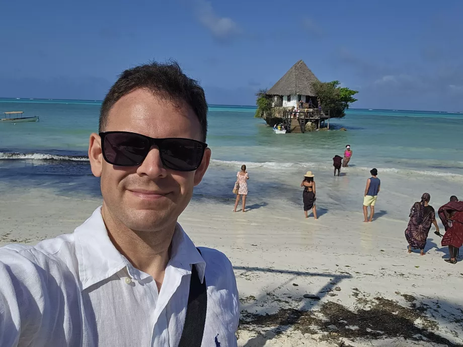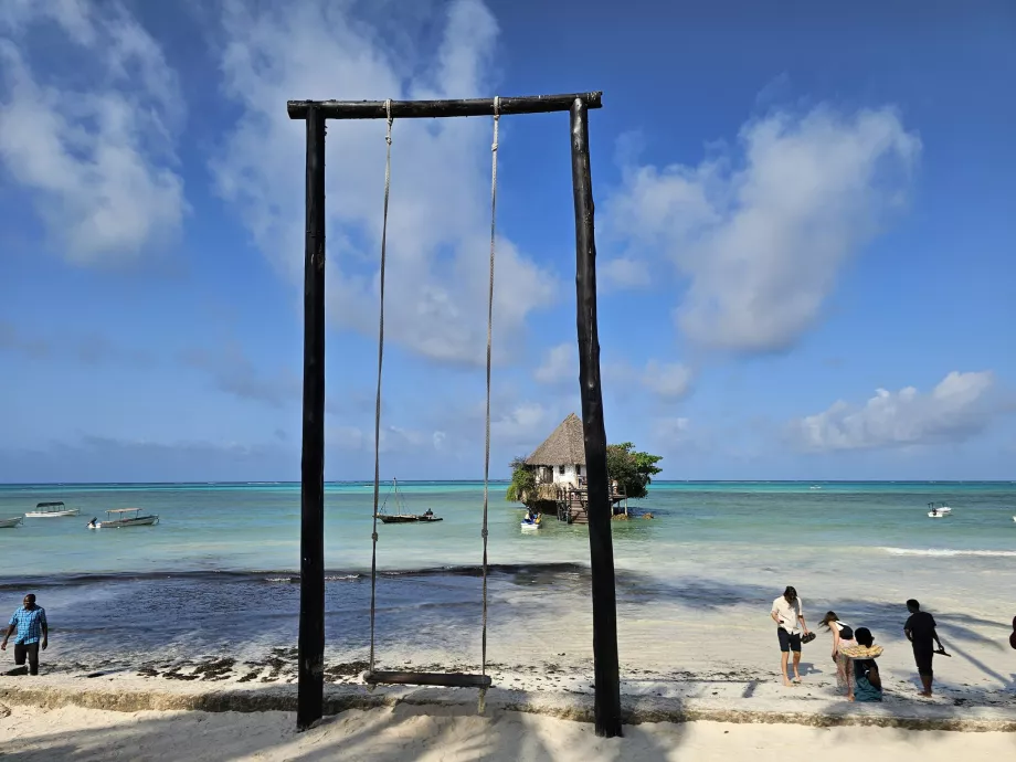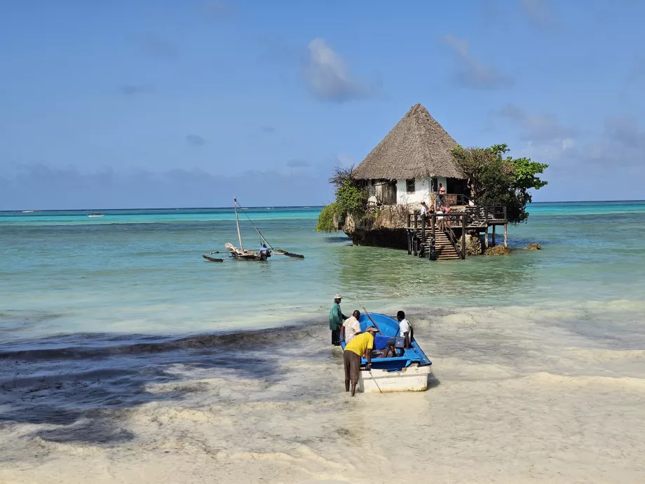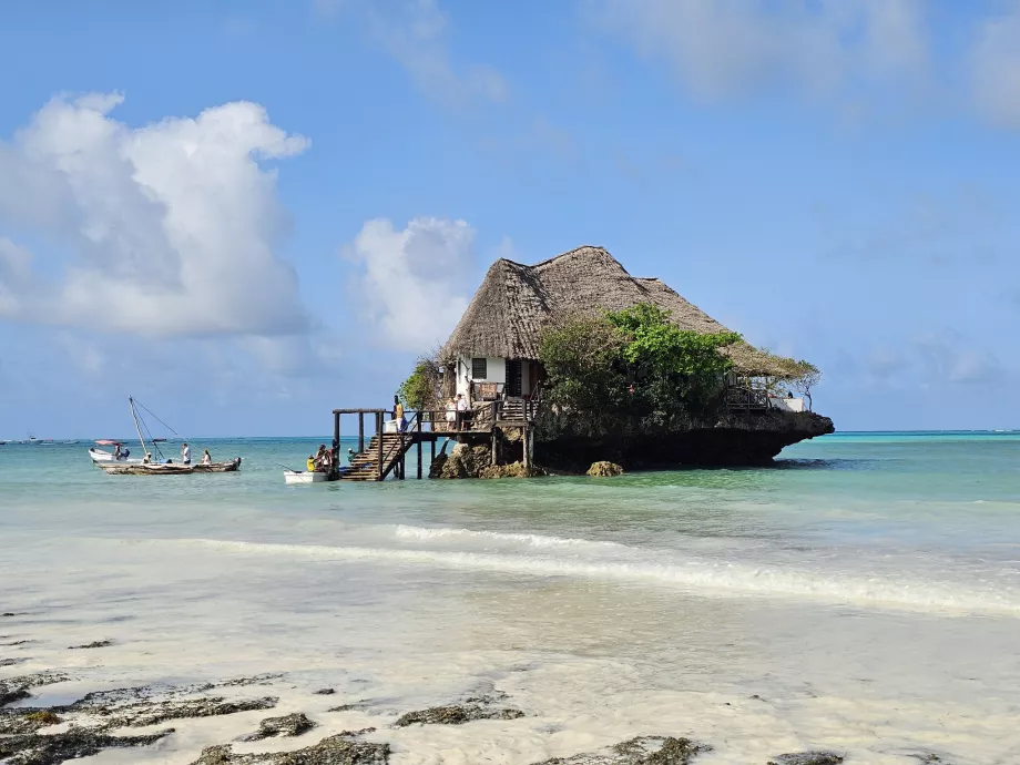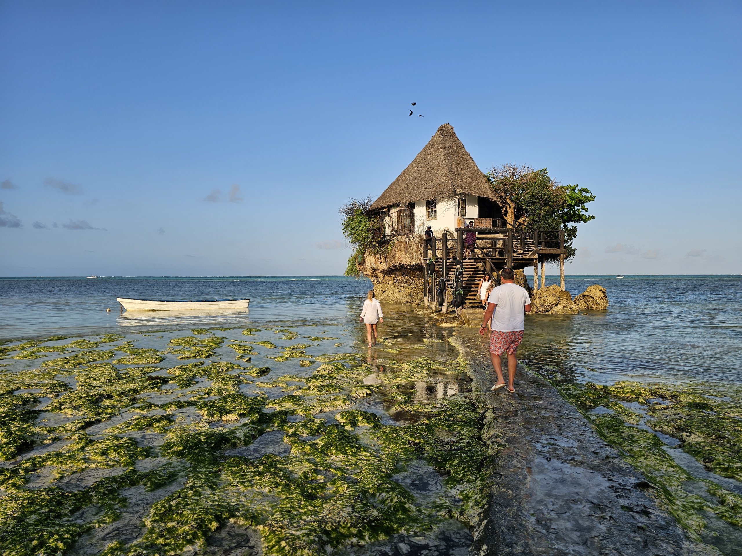 A pequena casa com aspeto de conto de fadas ergue-se sobre uma rocha no meio do oceano, a cerca de 50 metros da costa e, à primeira vista, dificilmente se saberia que no seu interior se encontra um dos restaurantes mais luxuosos de Zanzibar.
