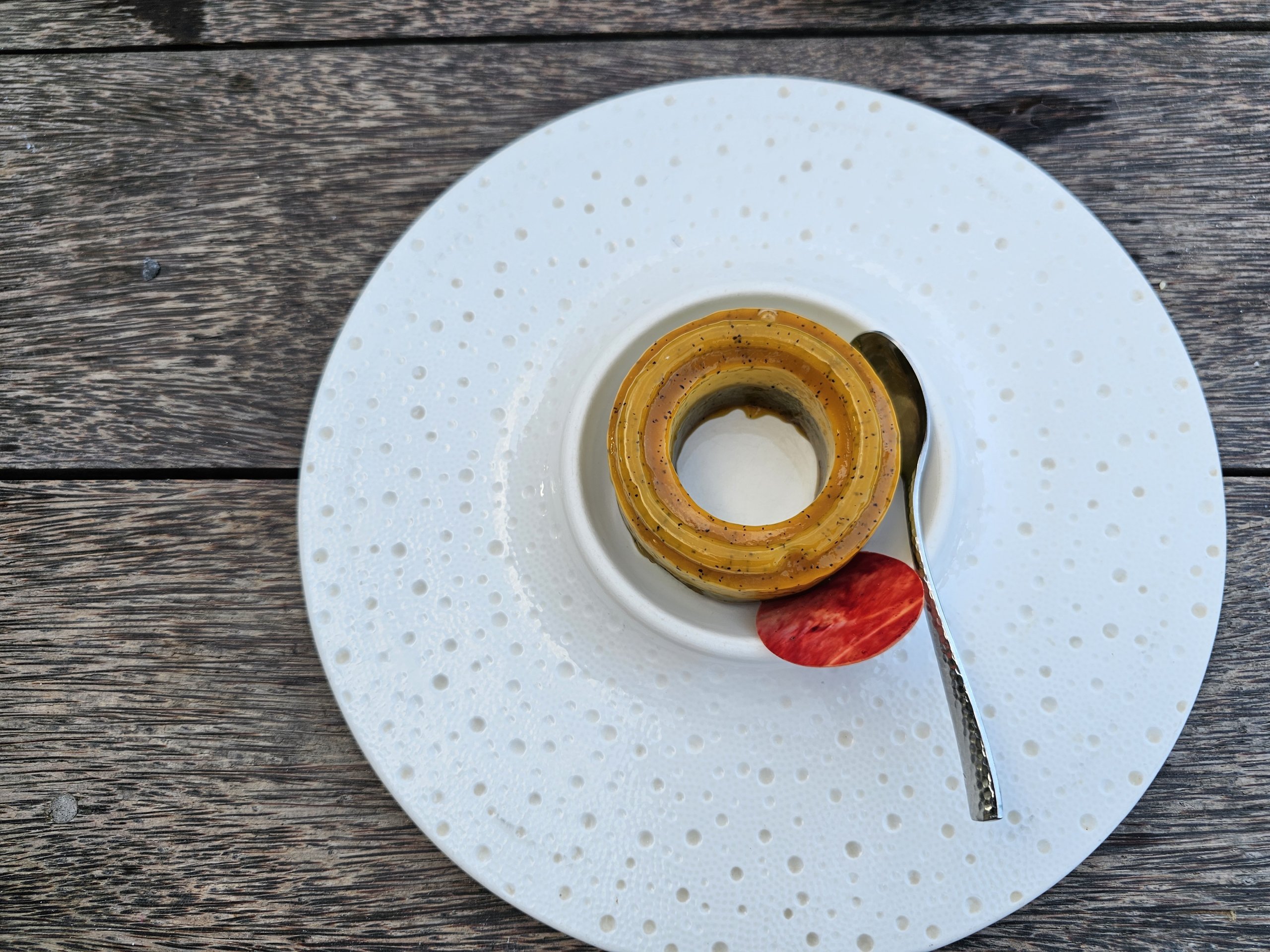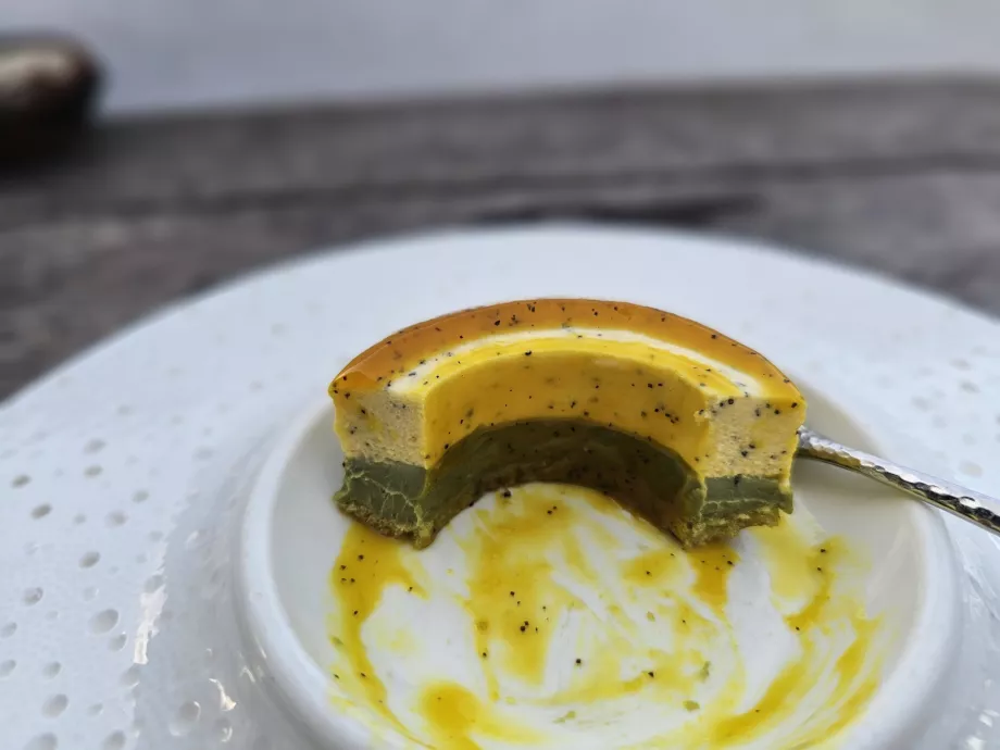 Mas a melhor parte foi sem dúvida a sobremesa. Provavelmente uma das melhores que já comi na minha vida. Encontra-a no menu com o nome Zanzibar Passion Ring e vai ter um bolo de creme de maracujá e pistácio. Brilhante.