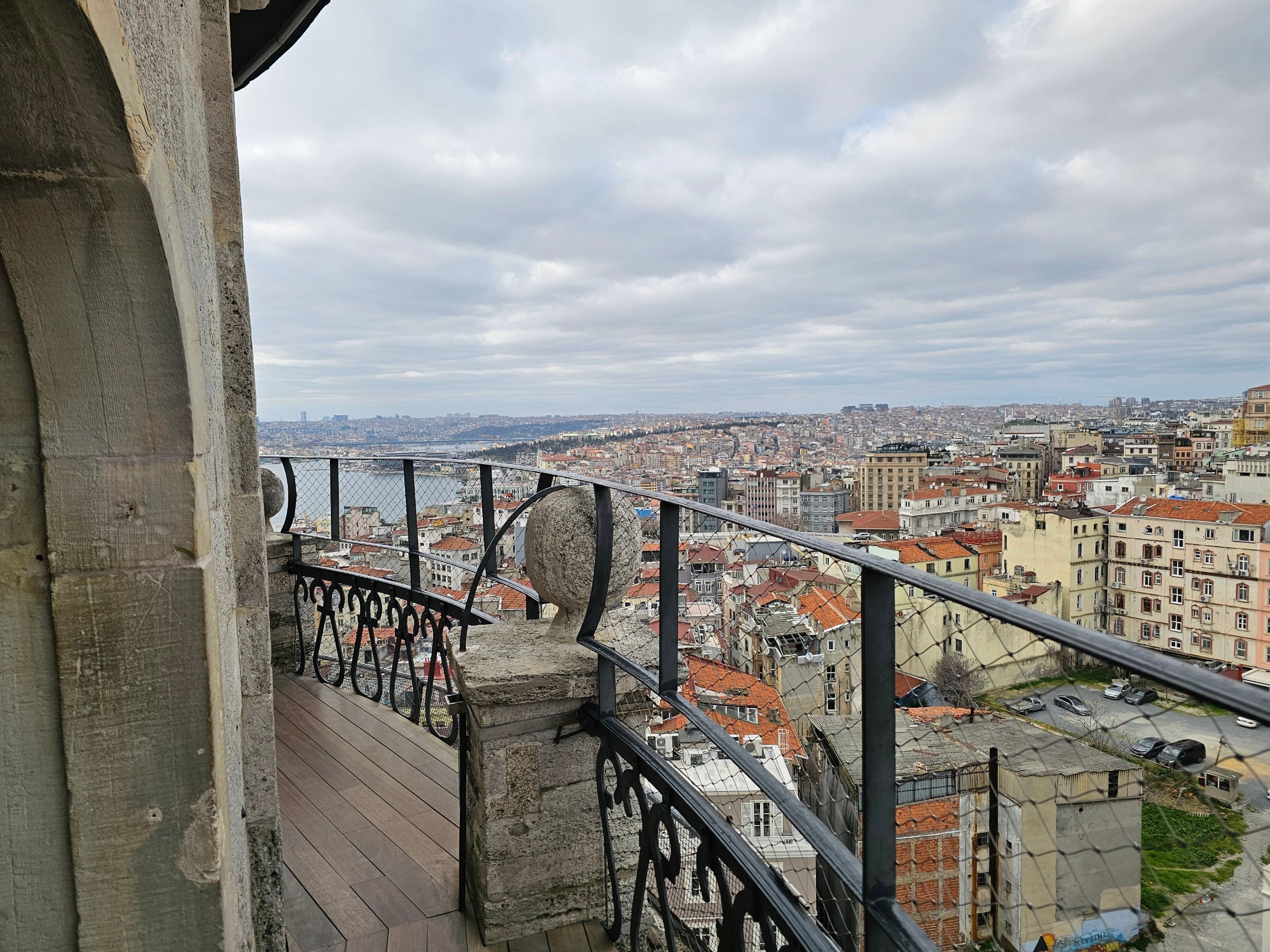 A Torre Galata tem um panorama circular exterior sem vidro = 360° com óptimas condições para a fotografia. Mas o espaço é estreito e muitas vezes está cheio de gente.