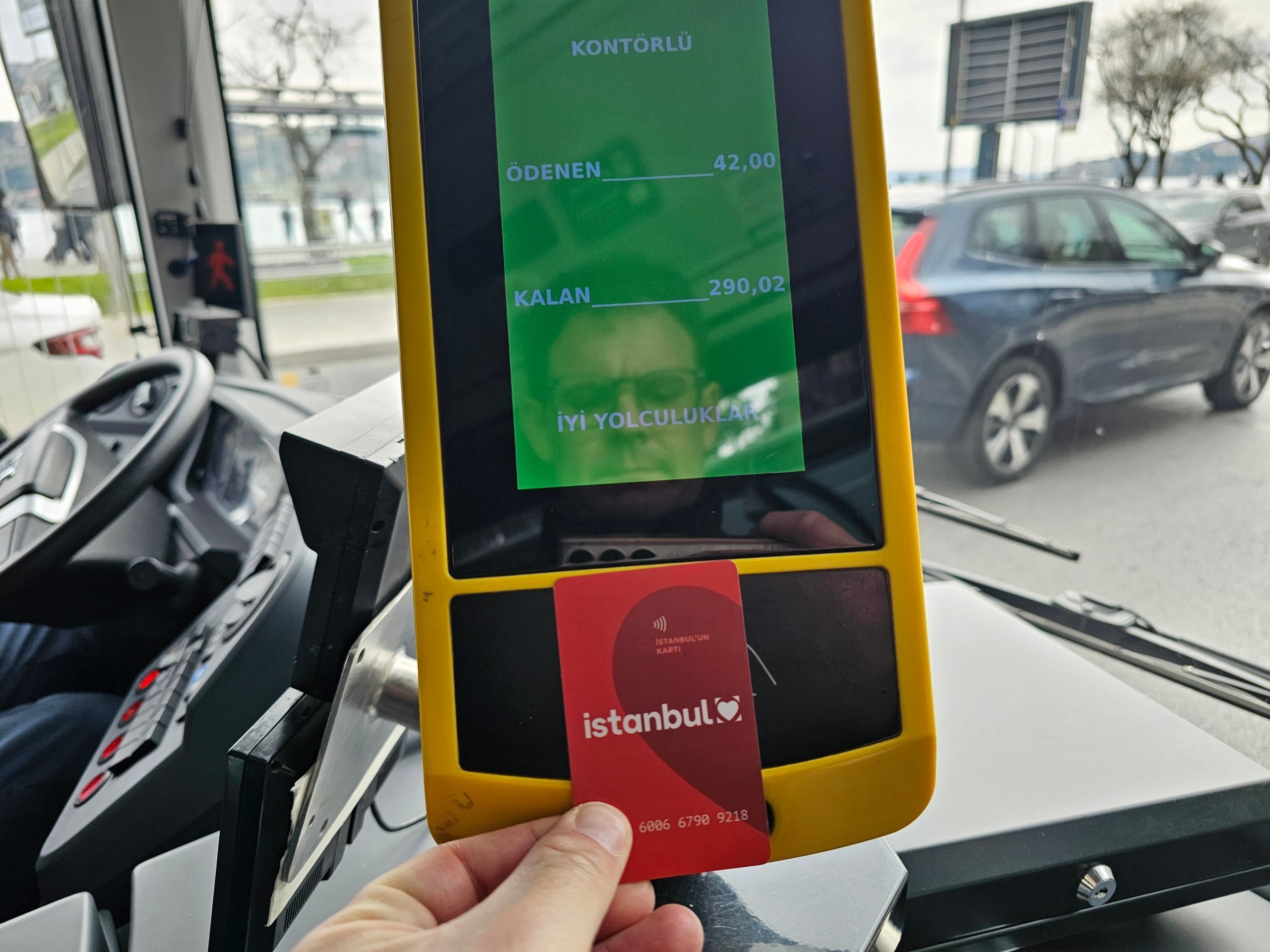 Existe um validador junto ao condutor, ao qual se pode anexar um Istanbulkart ou o seu próprio cartão sem contacto.