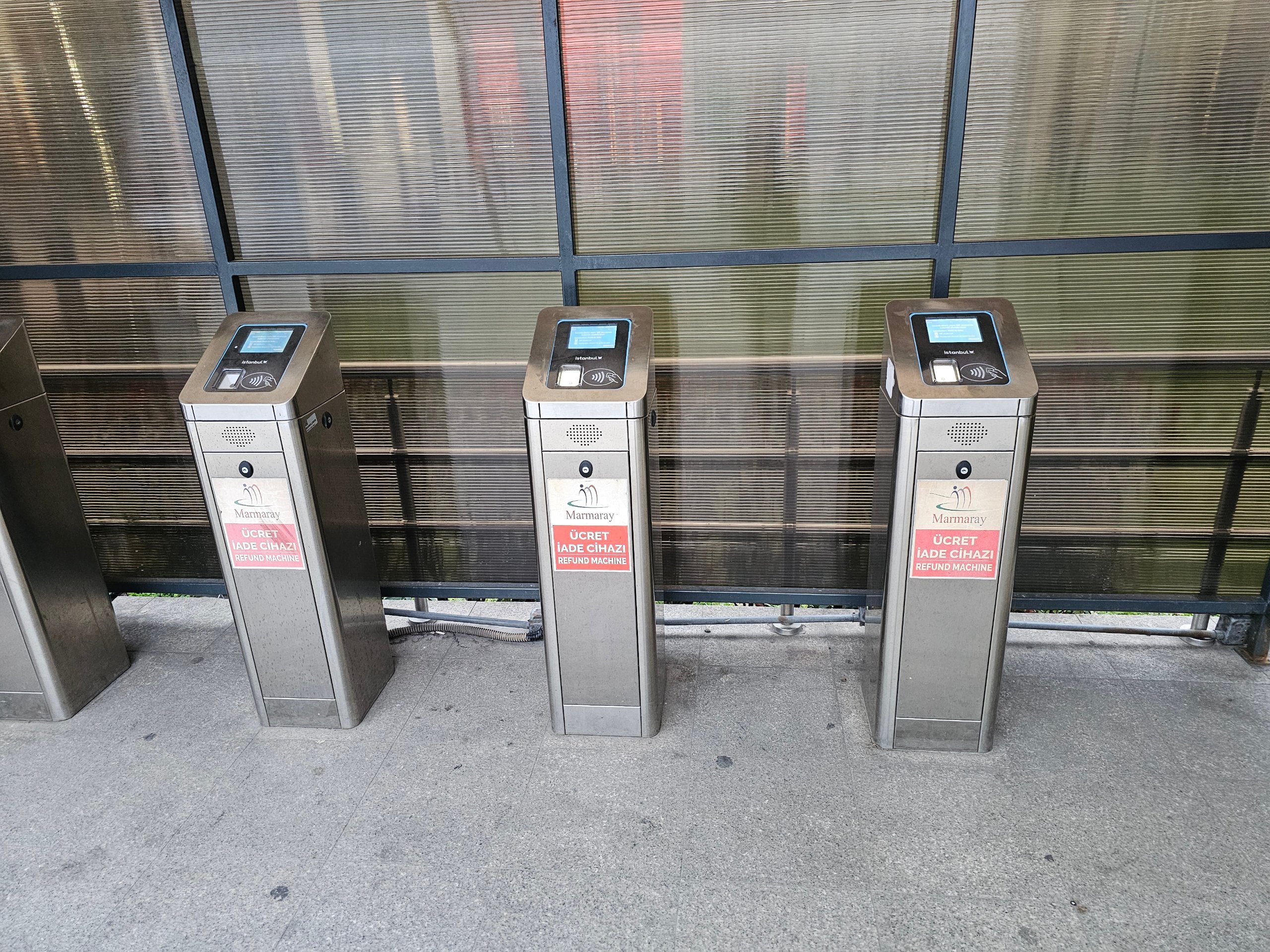 Quando sai da estação, encontra os pequenos validadores prateados (por vezes vermelhos) da "máquina de reembolso", nos quais volta a colocar o IstanbulKart e o preço real é calculado (normalmente, cerca de 35 tentativas para a curta travessia Sirkeci - Üsküdar.
