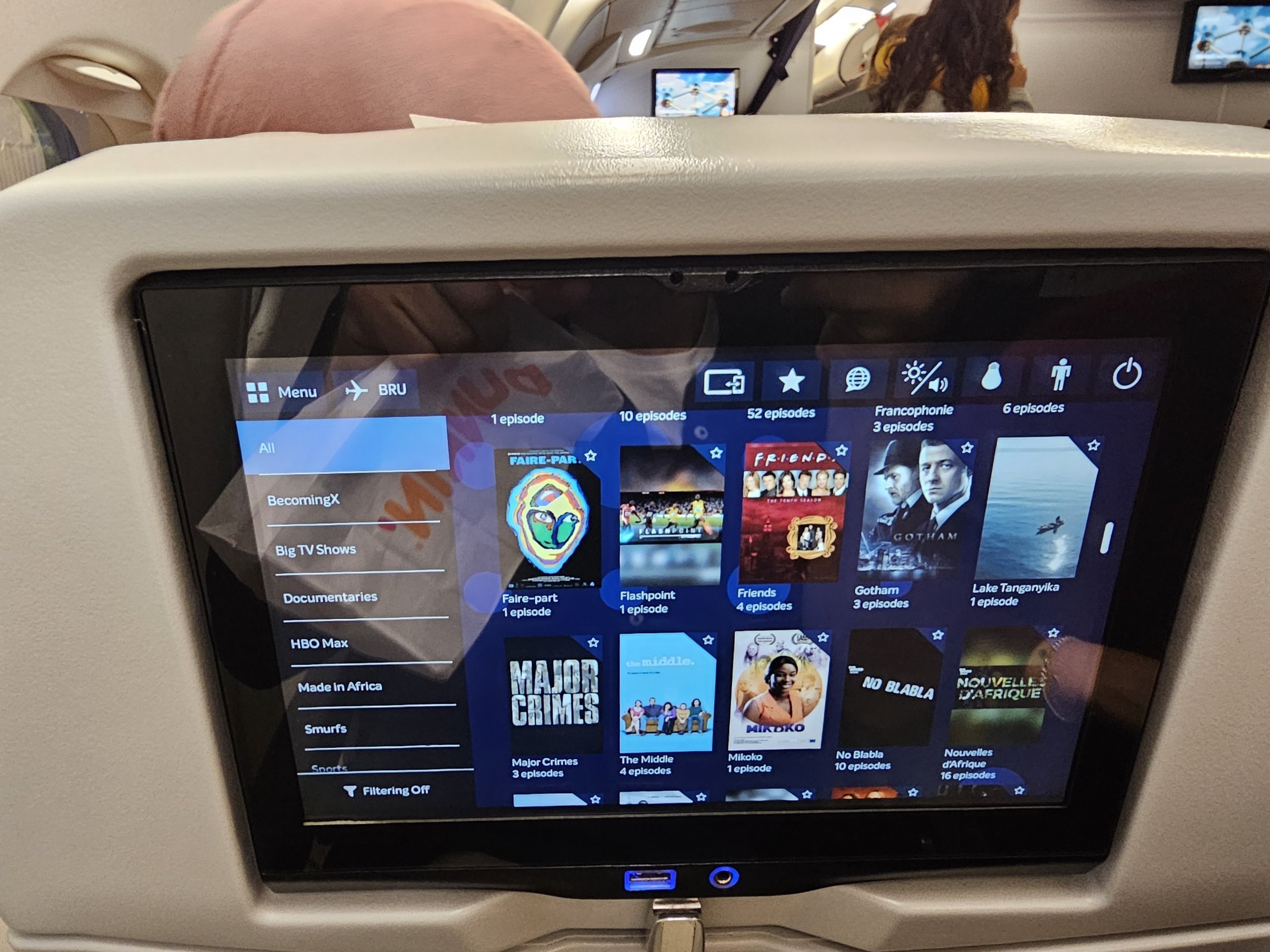 Nos aviões Airbus A330, só pode carregar os seus aparelhos electrónicos através da porta USB-C, que se encontra por baixo do ecrã do sistema de entretenimento.