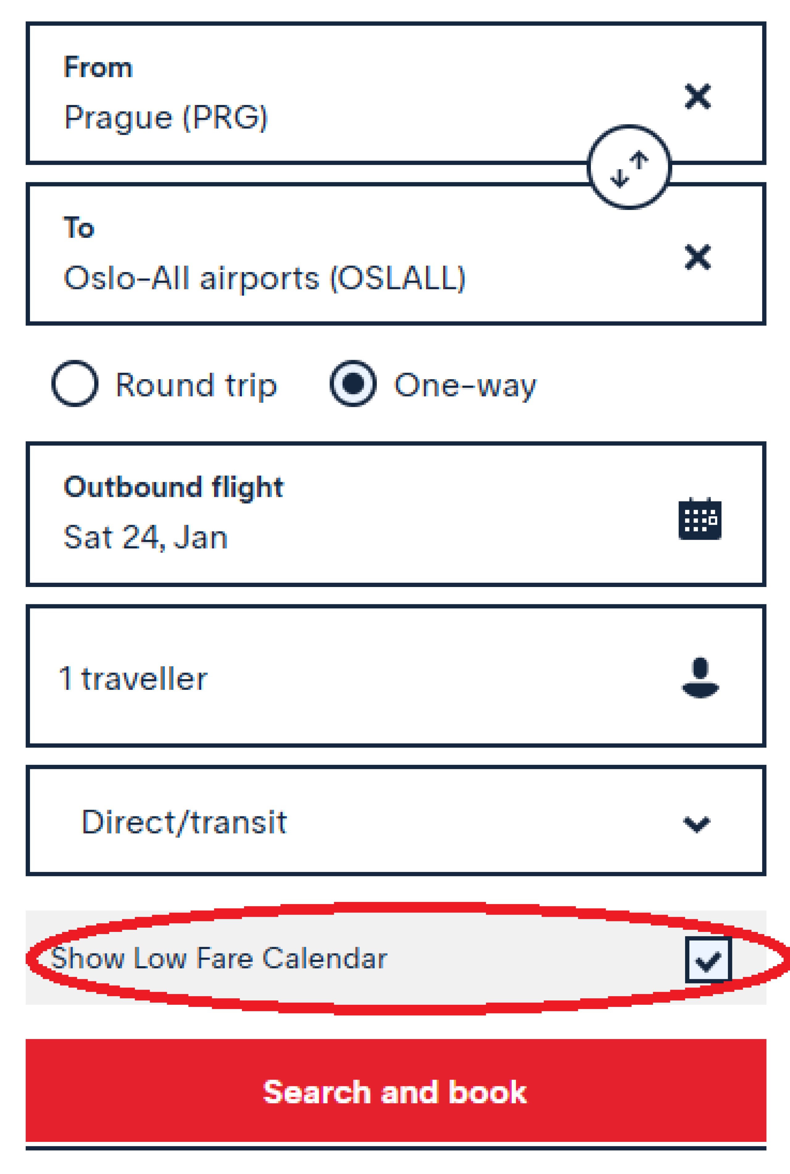 Por isso, ao procurar um bilhete, tem de marcar primeiro a caixa "Mostrar calendário de tarifas baixas".