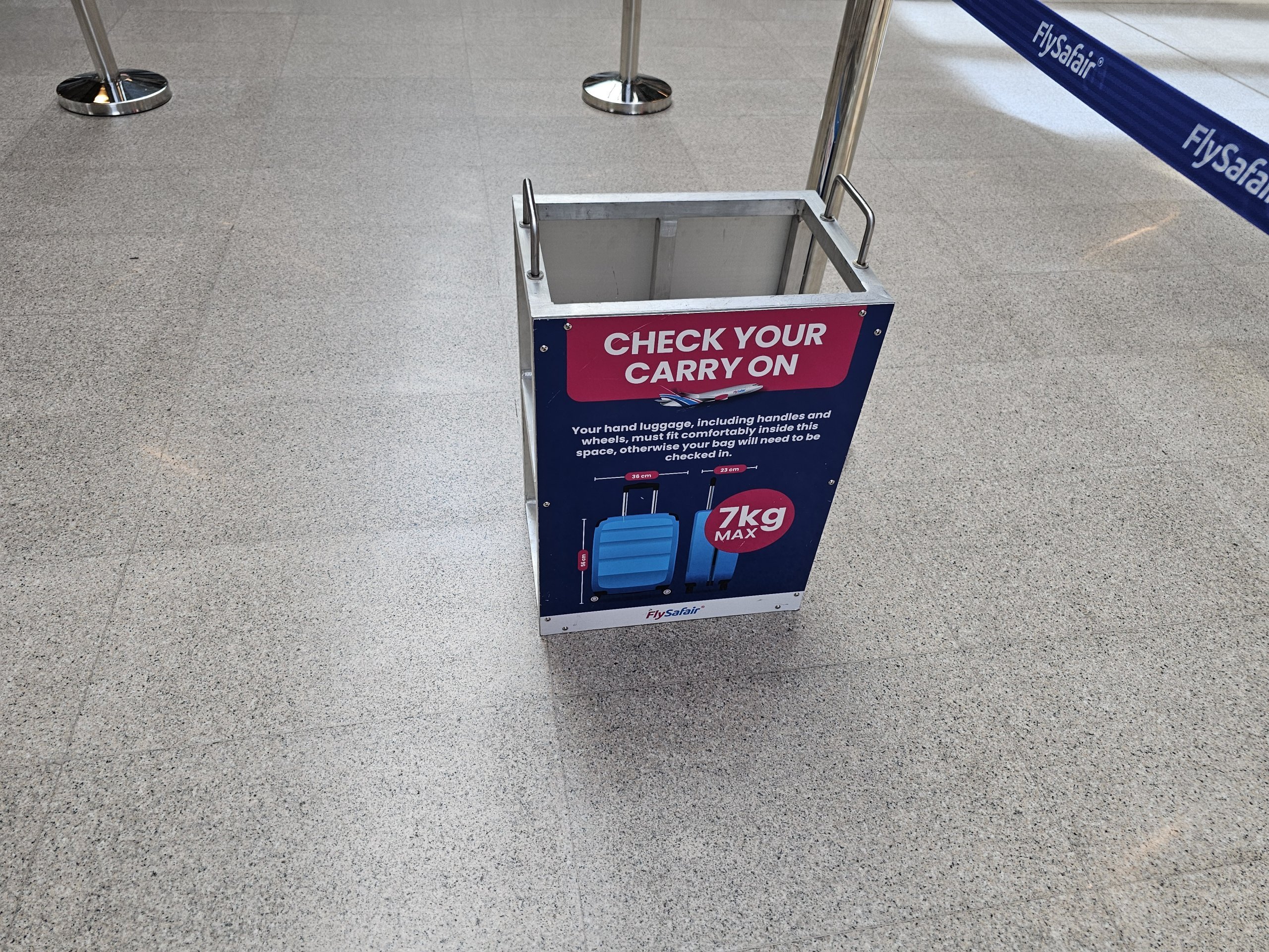 Informações oficiais podem ser encontradas em flysafair.co.za/luggage-policy.